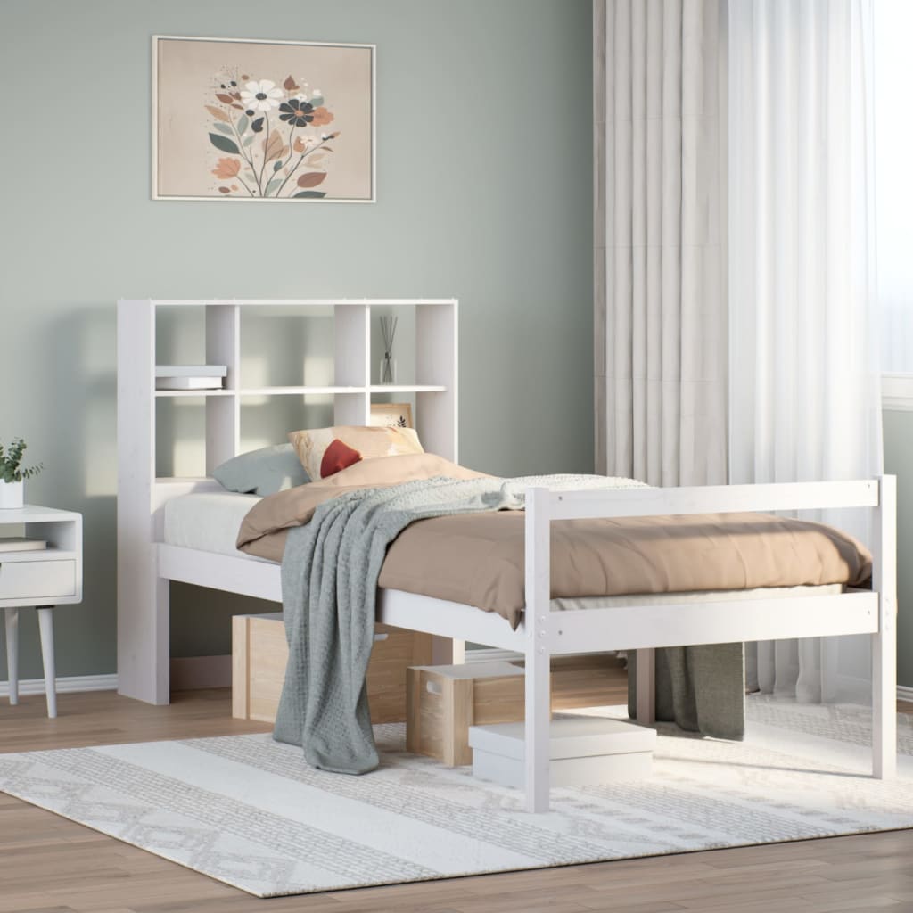 vidaXL Bed met boekenkast zonder matras grenenhout wit 75x190 cm