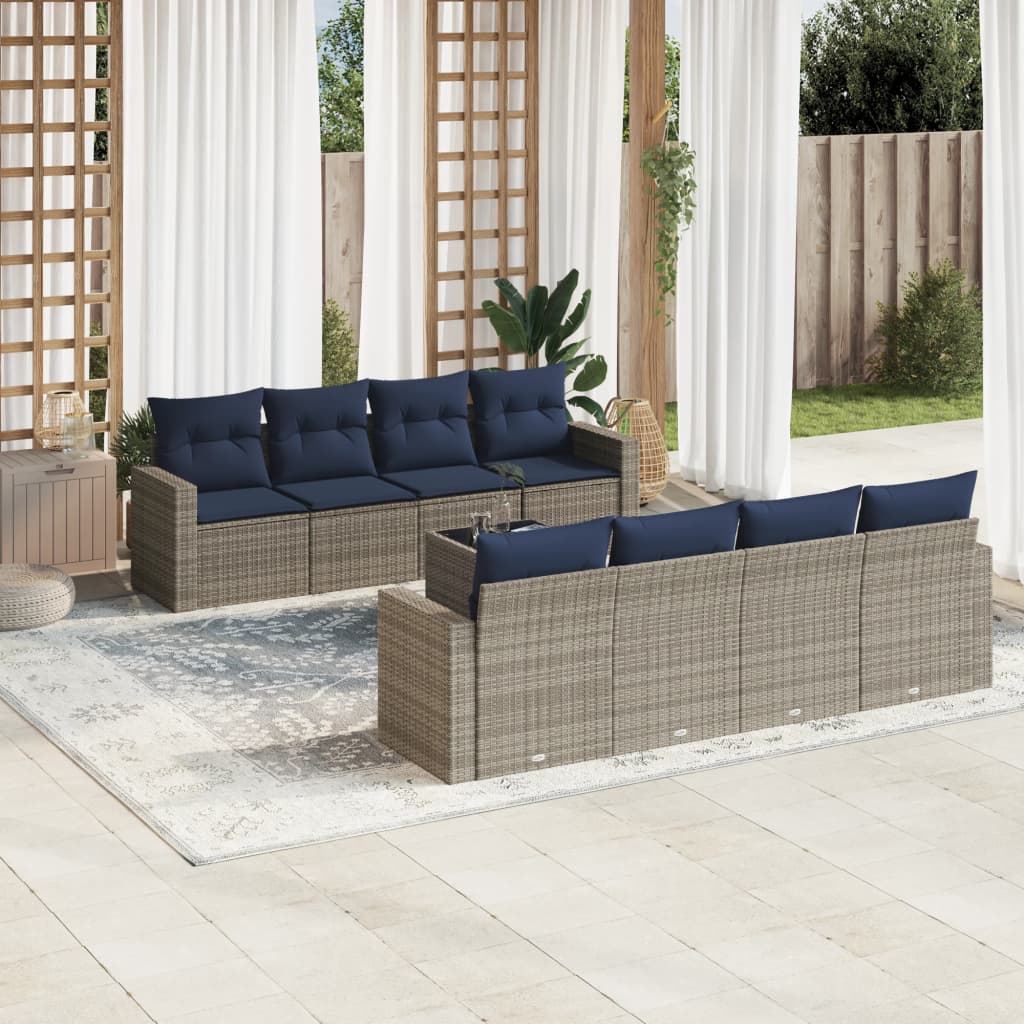 vidaXL 9-delige Loungeset met kussens poly rattan grijs Aantal Tijdelijk niet leverbaar Prijs € 622,90