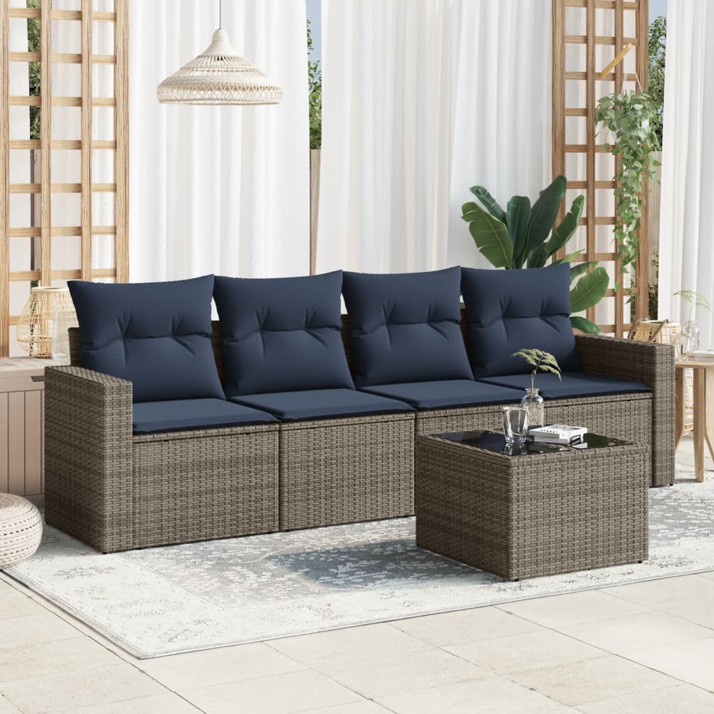 vidaXL 5-delige Loungeset met kussens poly rattan grijs Aantal Tijdelijk niet leverbaar Prijs € 312,85