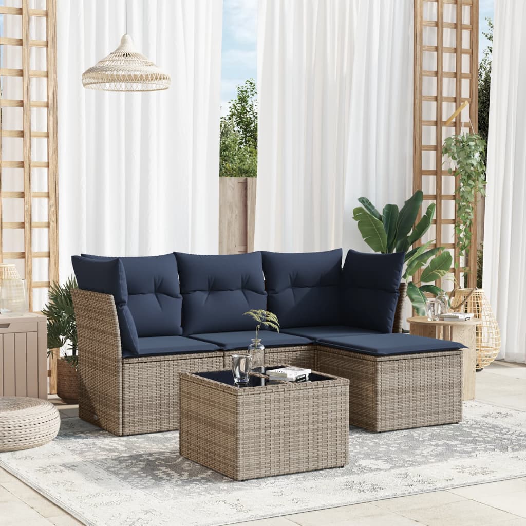 vidaXL 5-delige Loungeset met kussens poly rattan grijs Aantal Tijdelijk niet leverbaar Prijs € 334,80