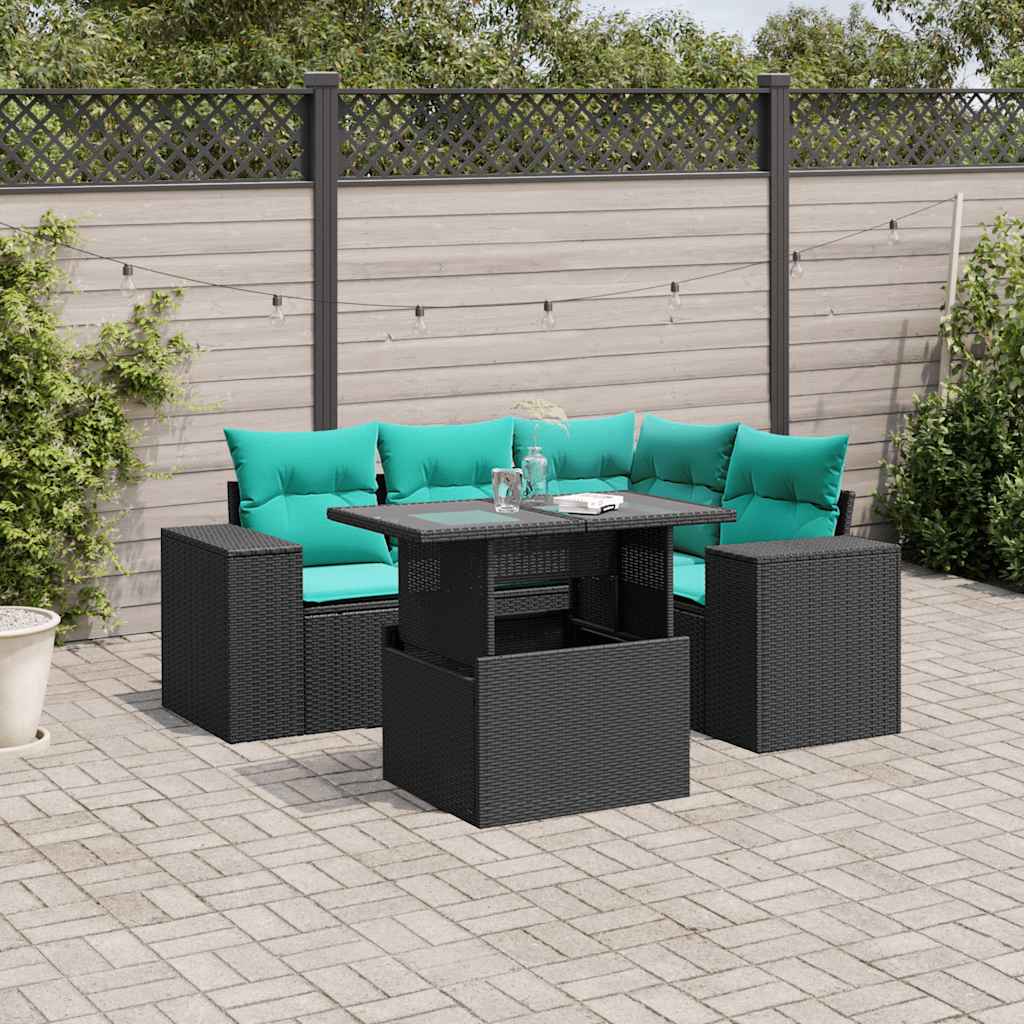 vidaXL 5-delige Tuin Sofa Set met Kussens - Zwart Poly Rattan Aantal Voeg toe aan winkelmandje Prijs € 375,55