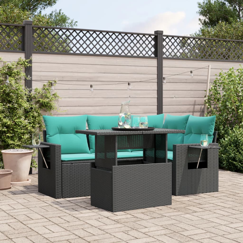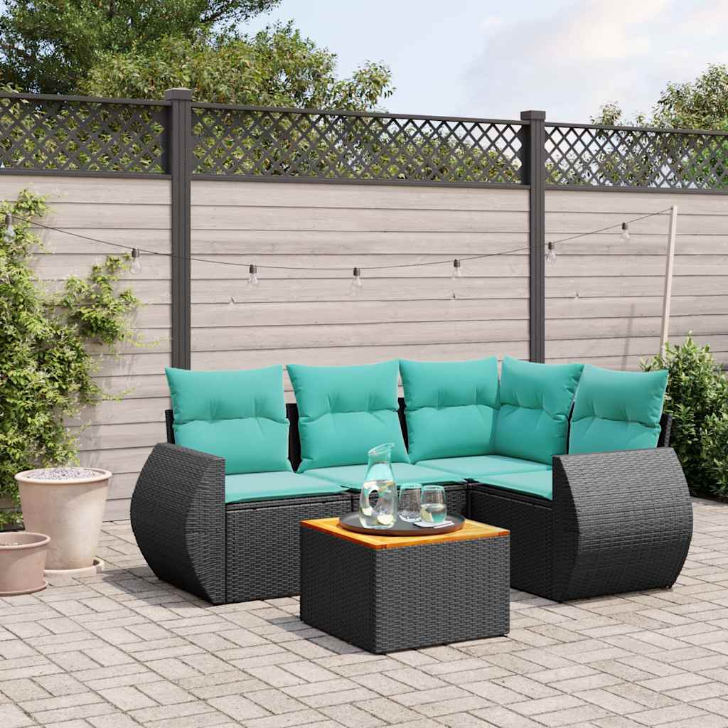 vidaXL 5-Delige Tuin Sofa Set met Kussens in het Zwart van Poly Riet Aantal Tijdelijk niet leverbaar Prijs € 349,10