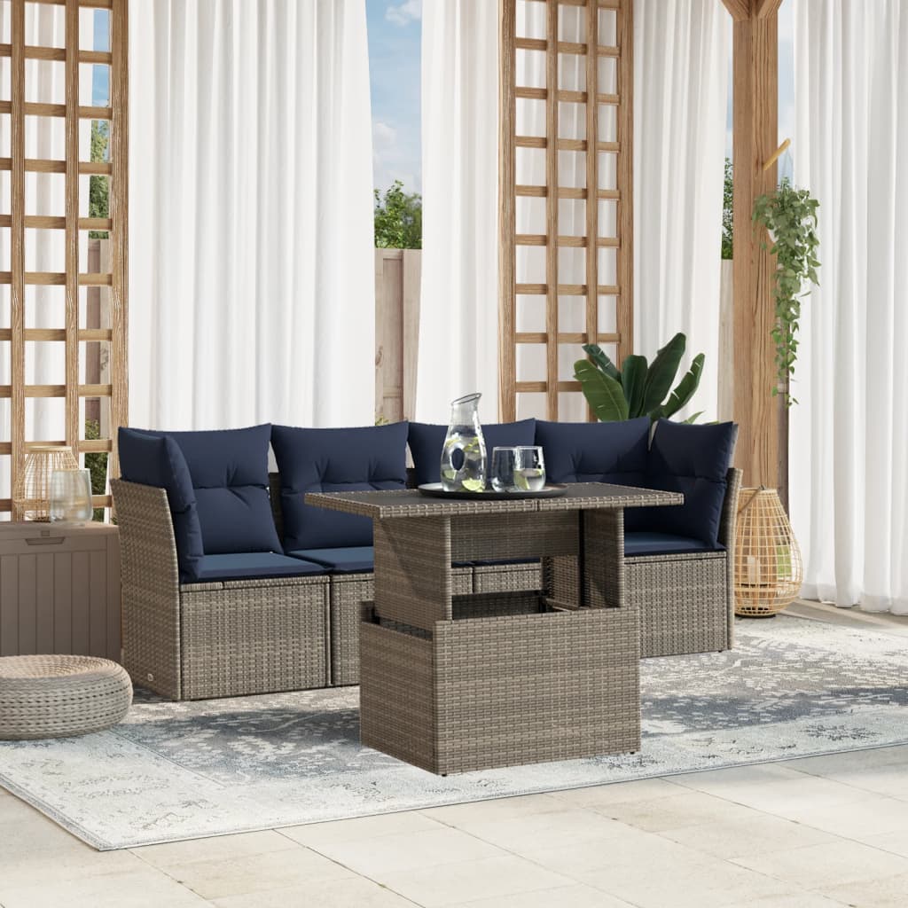 vidaXL 5-delige tuinbankset met kussens, grijs polyrotan Aantal Voeg toe aan winkelmandje Prijs € 433,20