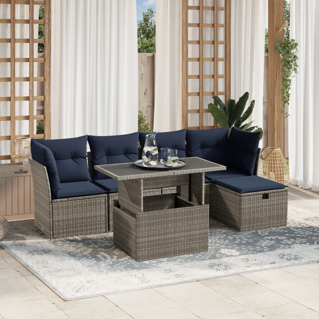 vidaXL 6-delige tuinbankset met kussens, grijs polyrotan Aantal Voeg toe aan winkelmandje Prijs € 433,25