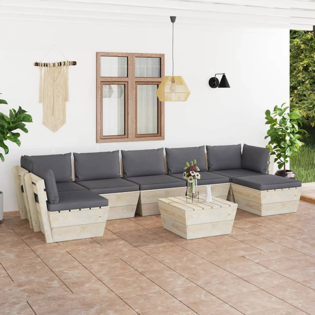 vidaXL 8-delige Loungeset met kussens massief grenenhout wasbruin