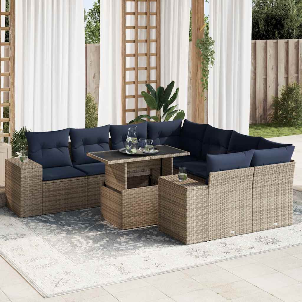 vidaXL 9-delige Loungeset met kussens poly rattan beige Aantal Tijdelijk niet leverbaar Prijs € 585,50