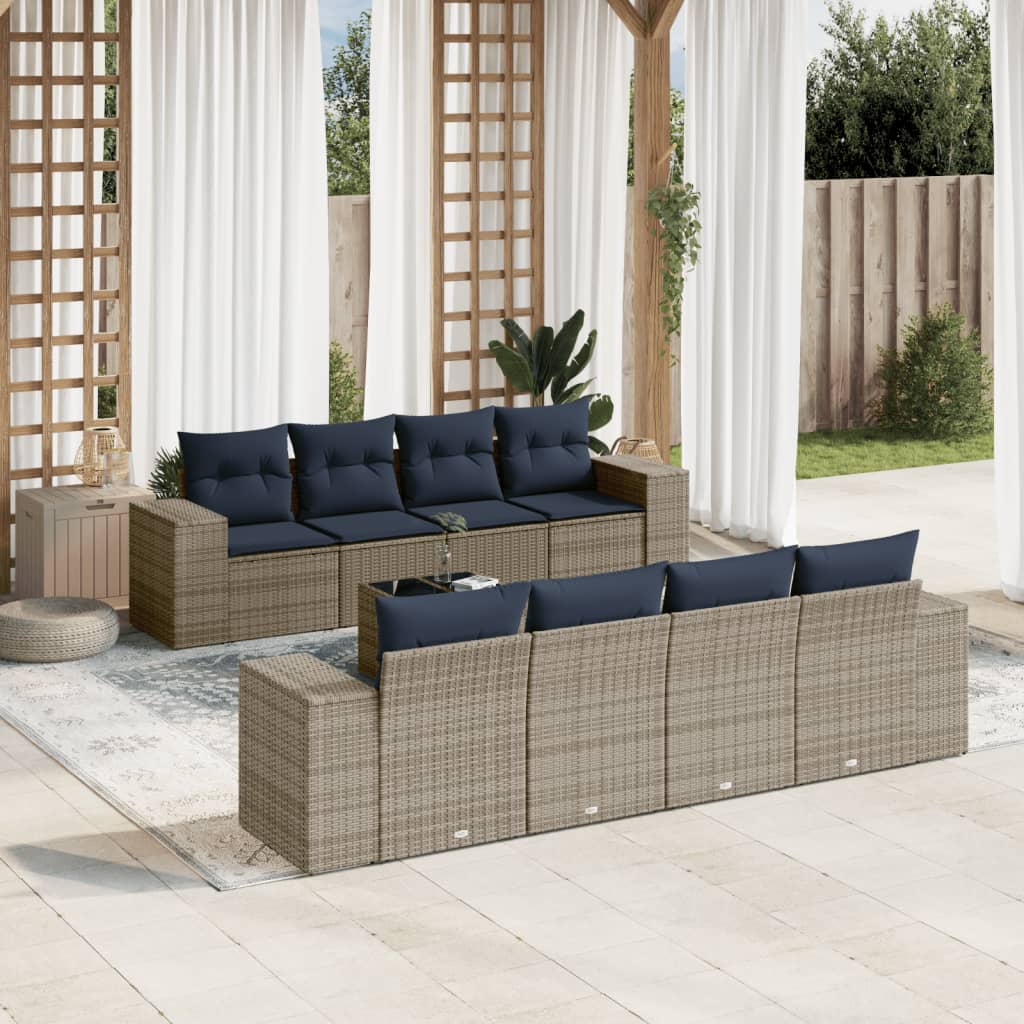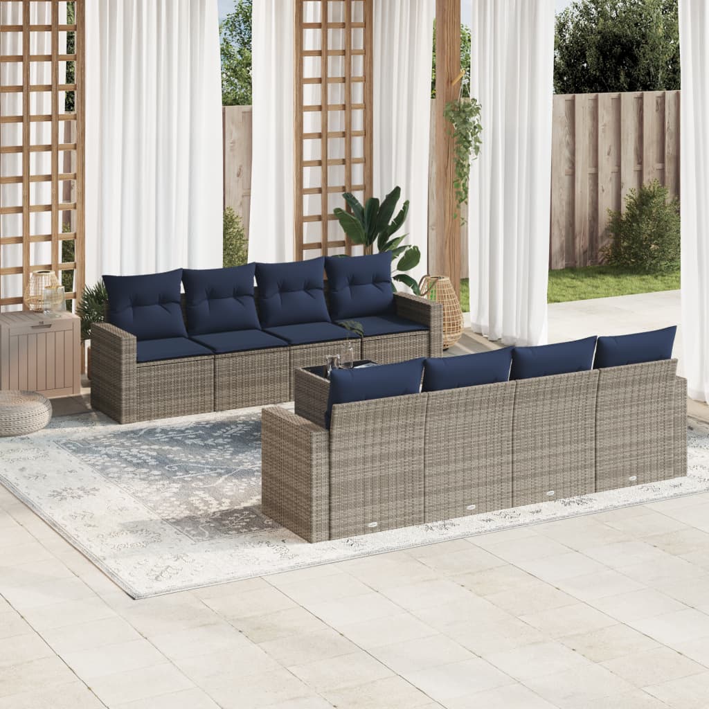 vidaXL 9-delige Loungeset met kussens poly rattan grijs Aantal Tijdelijk niet leverbaar Prijs € 586,50