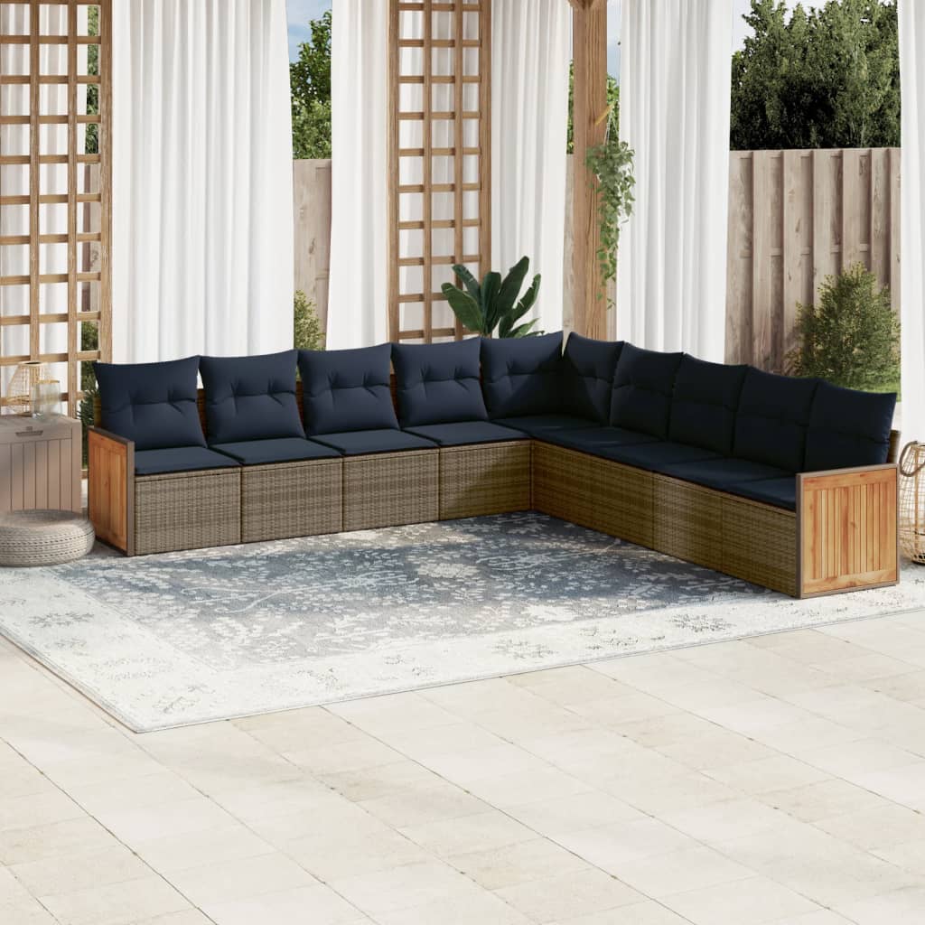 vidaXL 9-delige Loungeset met kussens poly rattan grijs Aantal Tijdelijk niet leverbaar Prijs € 640,50