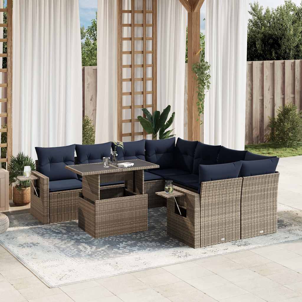 vidaXL 9-delige tuinbankset met kussens, grijs polyrotan Aantal Voeg toe aan winkelmandje Prijs € 671,65