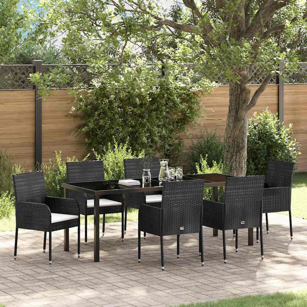 vidaXL Tuin Eetset met kussen 7 pcs Zwart Standaard PE Rattan Aantal Voeg toe aan winkelmandje Prijs € 477,50
