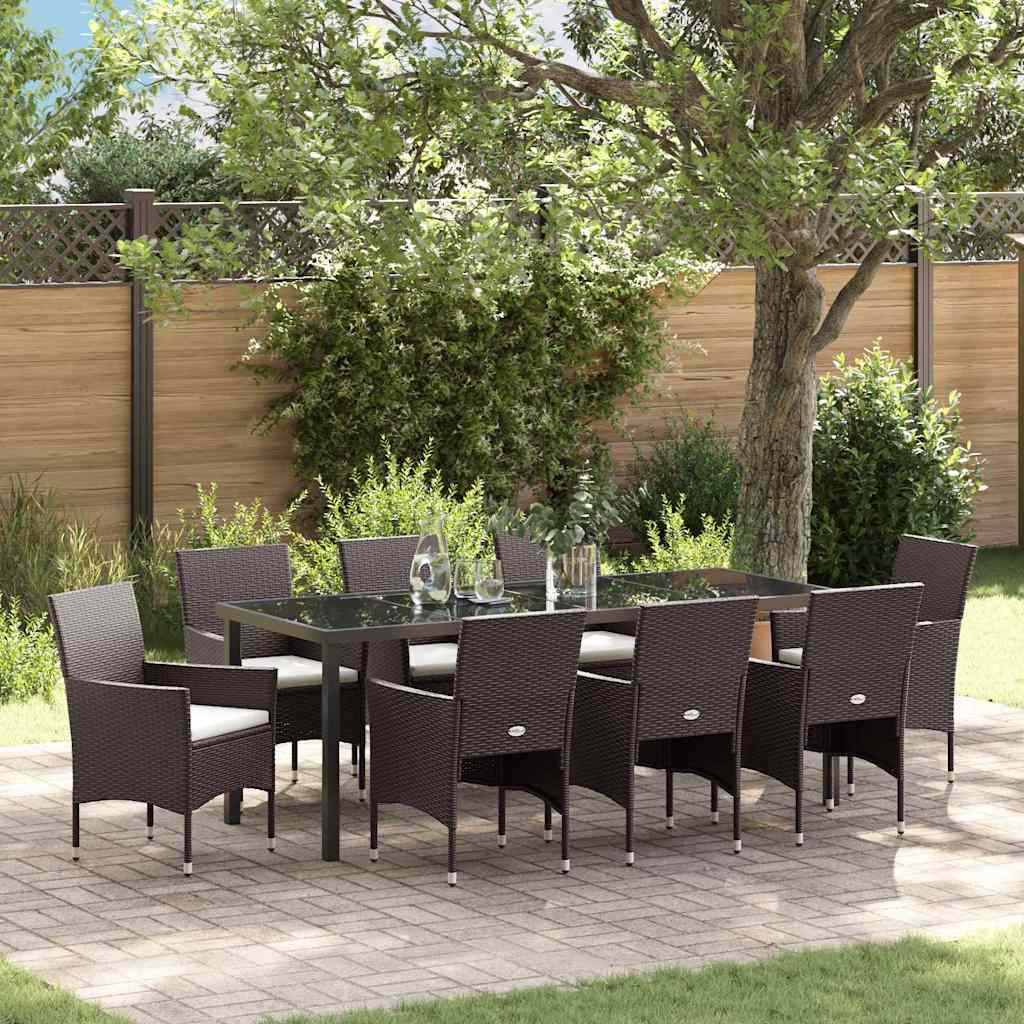 vidaXL Tuin Eetset met kussen 9 pcs Beige en bruin poly rattan Aantal Tijdelijk niet leverbaar Prijs € 960,90