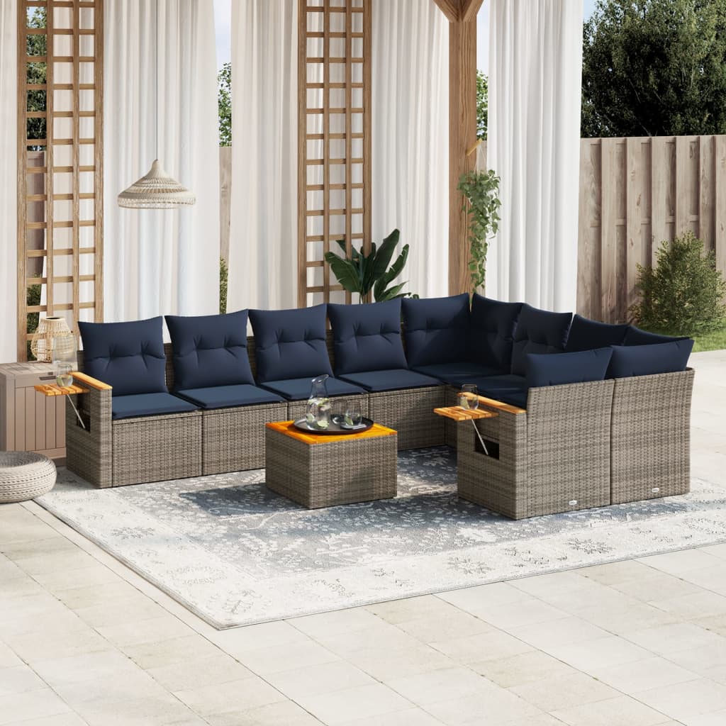 vidaXL 10-delige Loungeset met kussens poly rattan grijs Aantal Tijdelijk niet leverbaar Prijs € 750,30