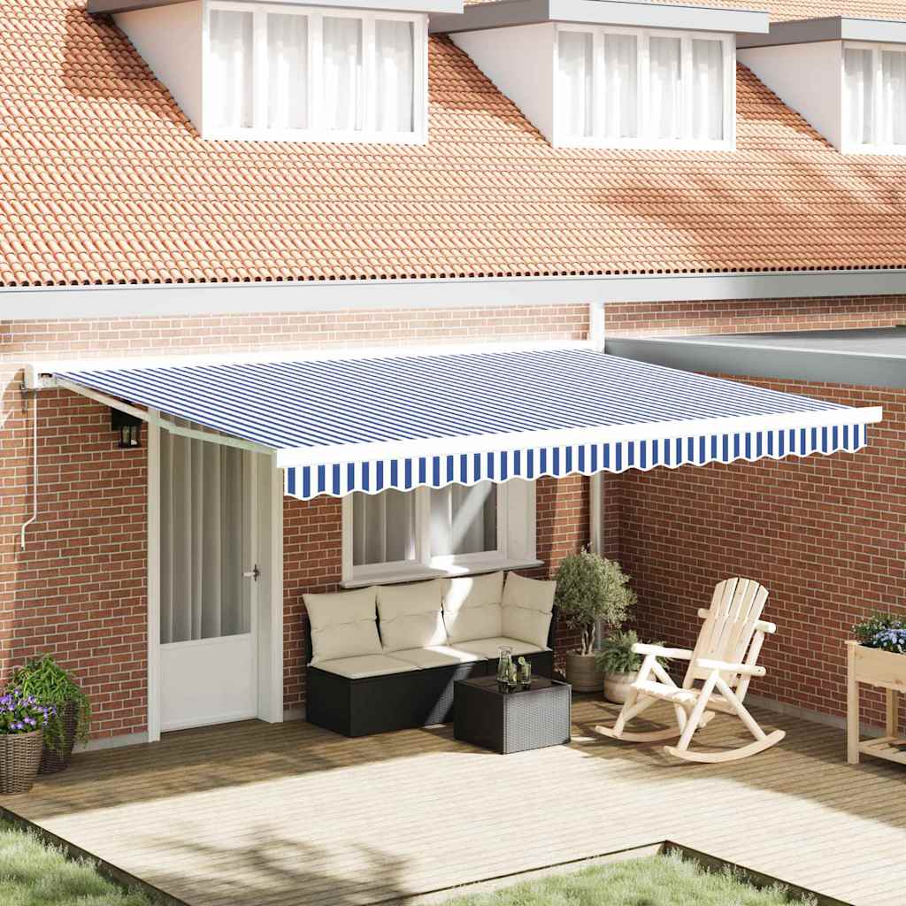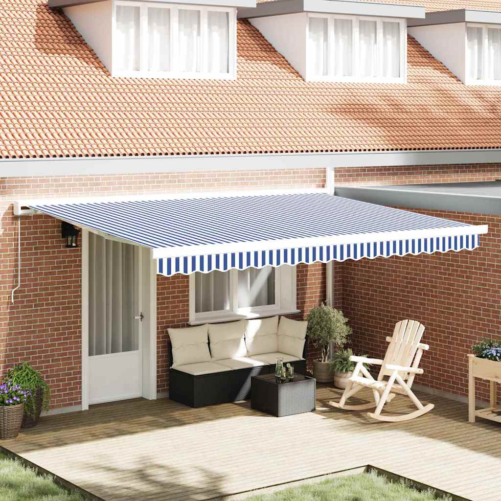 vidaXL Inklapbaar Zonnescherm Blauw en wit 4.5 x 3 m Stof en metaal Aantal Voeg toe aan winkelmandje Prijs € 390,10
