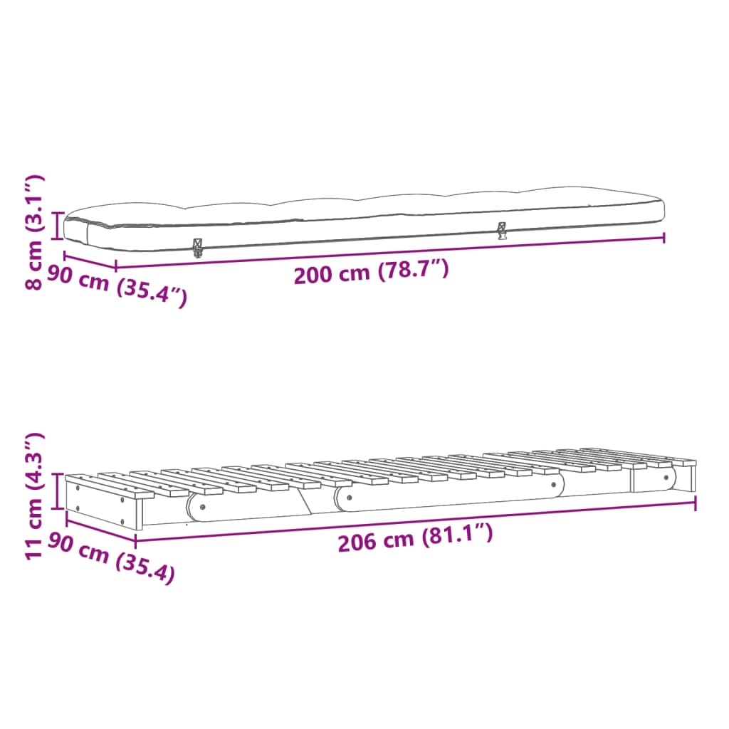 - Afmetingen: 90 x 200 x 8 cm (B x D x D)