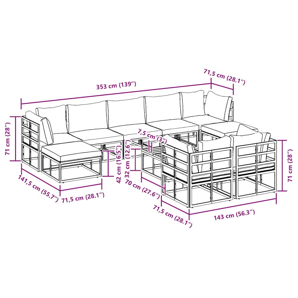 Deze stunning Garden Sofa Set transformeert elke buitenruimte met zijn moderne, stijlvolle ontwerp. Gemaakt van hoogwaardige aluminium en polyester materialen, is deze veelzijdige modulaire zitoplossing perfect voor tuinen, terrassen of elke buiten lounge ruimte. De set heeft een naadloze fusie van stijl en functie, gekenmerkt door zijn strakke lijnen en minimalistische aantrekkingskracht, ideaal voor bijeenkomsten of ontspannen alleen.