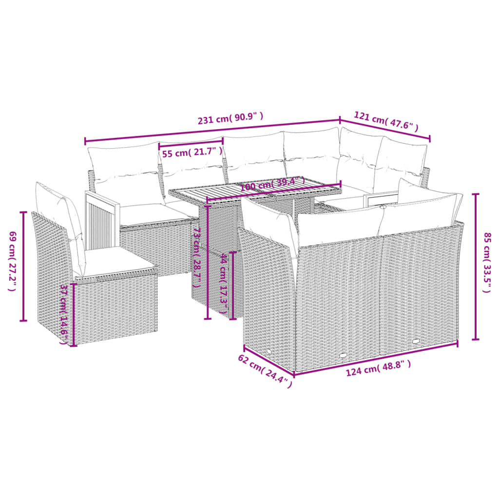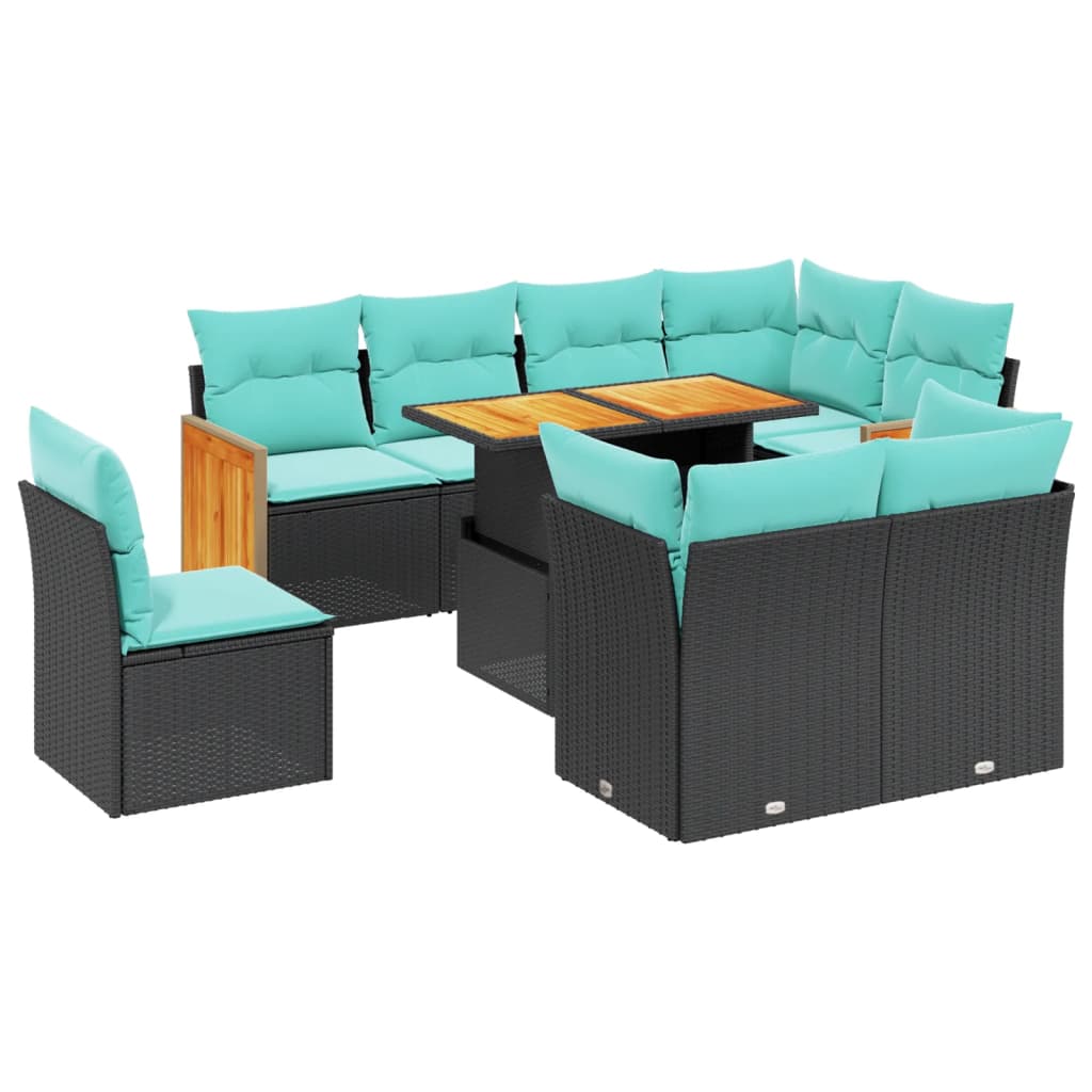 - Materiaal: PE-rattan, gepoedercoat staal en massief acaciahout met olieafwerking