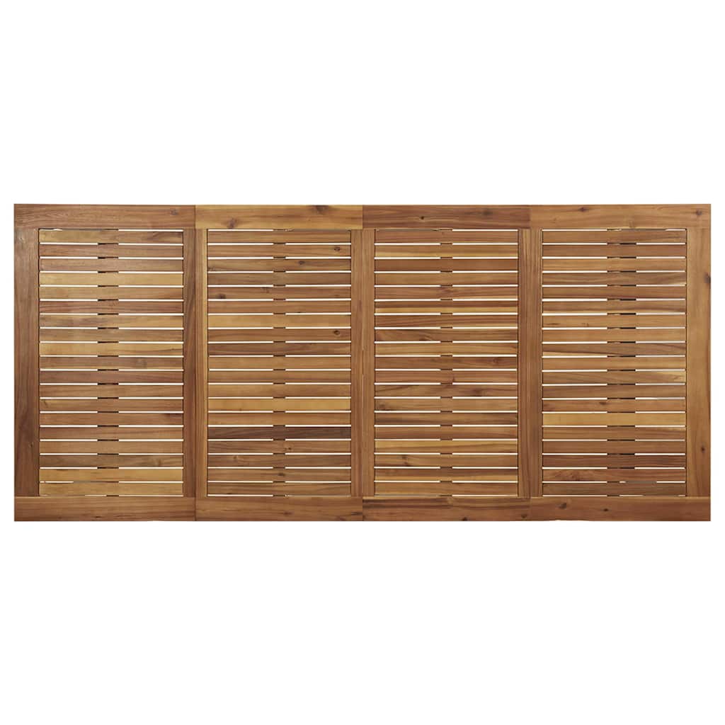 - Inclusief onderdelen: Deze set heeft stevige armleuningen van massief acaciahout en draait helemaal om comfort en duurzaamheid. De stalen poten zorgen voor stabiliteit, waardoor hij makkelijk regelmatig gebruik aankan. Het oppervlak, de zitplaatsen en het frame, allemaal van massief acaciahout, geven een nette en stijlvolle uitstraling.
