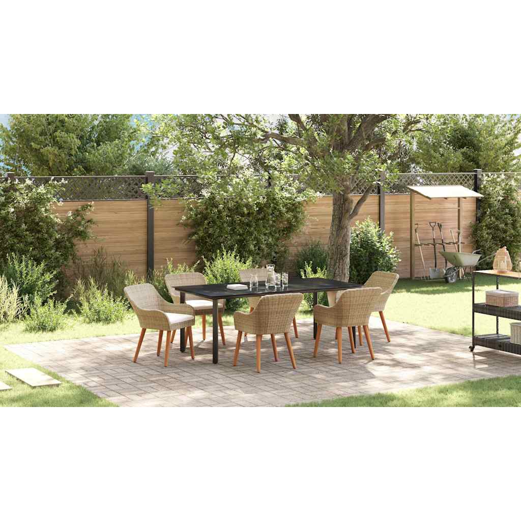 Verhoog je buiten dineervibe met deze stijlvolle tuin eetset. Het is een complete set met een slanke rechthoekige tafel en zes comfy stoelen, en maakt je terras of balkon een fijne plek om te eten of te relaxen.