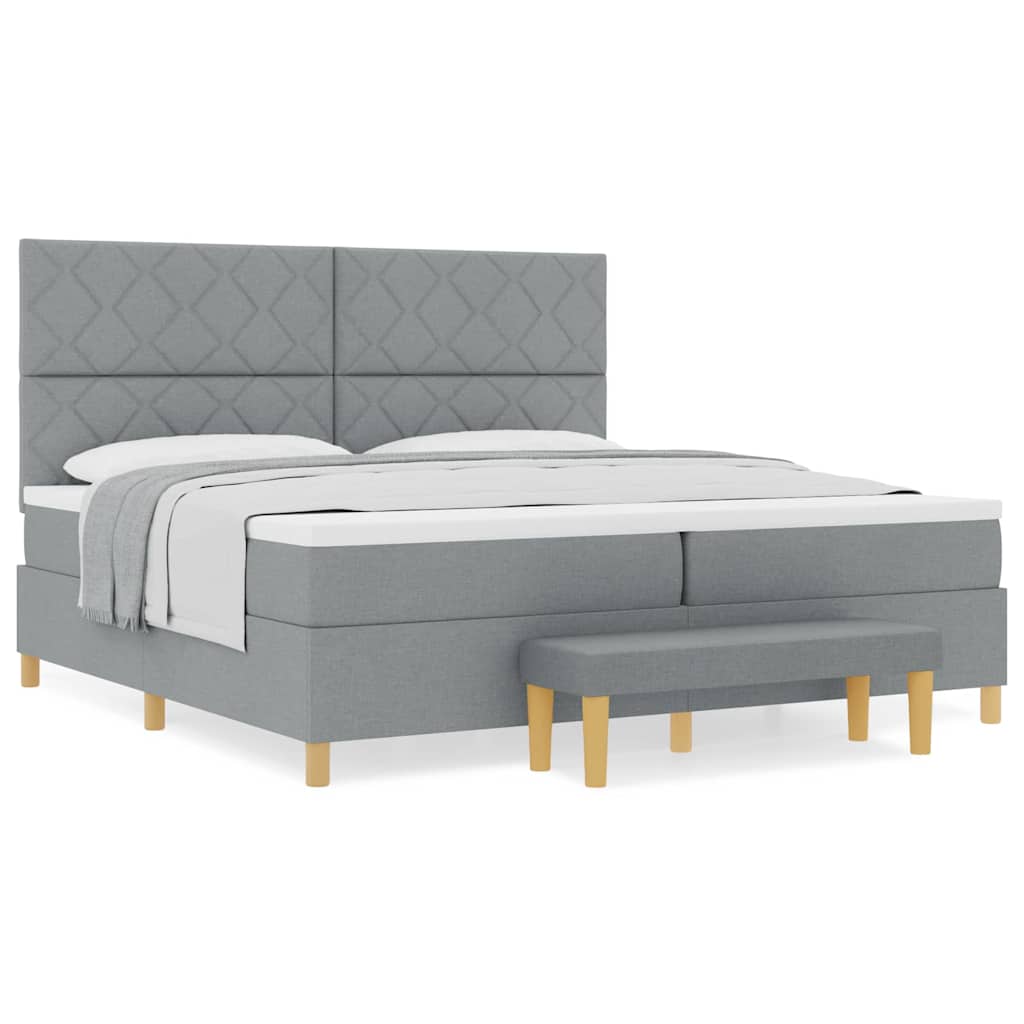 Dit boxspringbed combineert comfort met stijl en is een echte eyecatcher voor elke slaapkamer. Met zijn moderne lichtgrijze bekleding en stevige houten frame biedt het niet alleen comfort, maar geeft het ook je ruimte een boost terwijl het makkelijk plaats biedt aan twee volwassenen.
