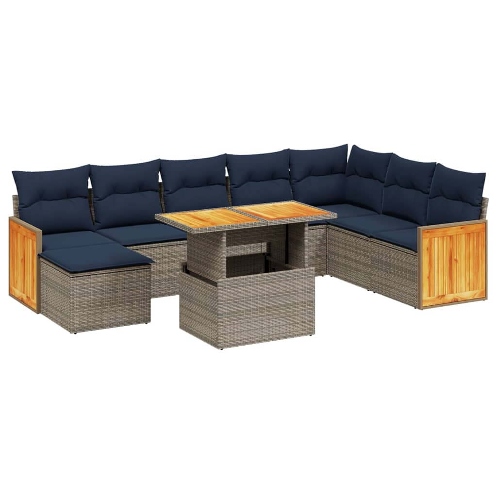 - Materiaal: PE-rattan, gepoedercoat staal en massief acaciahout met olieafwerking