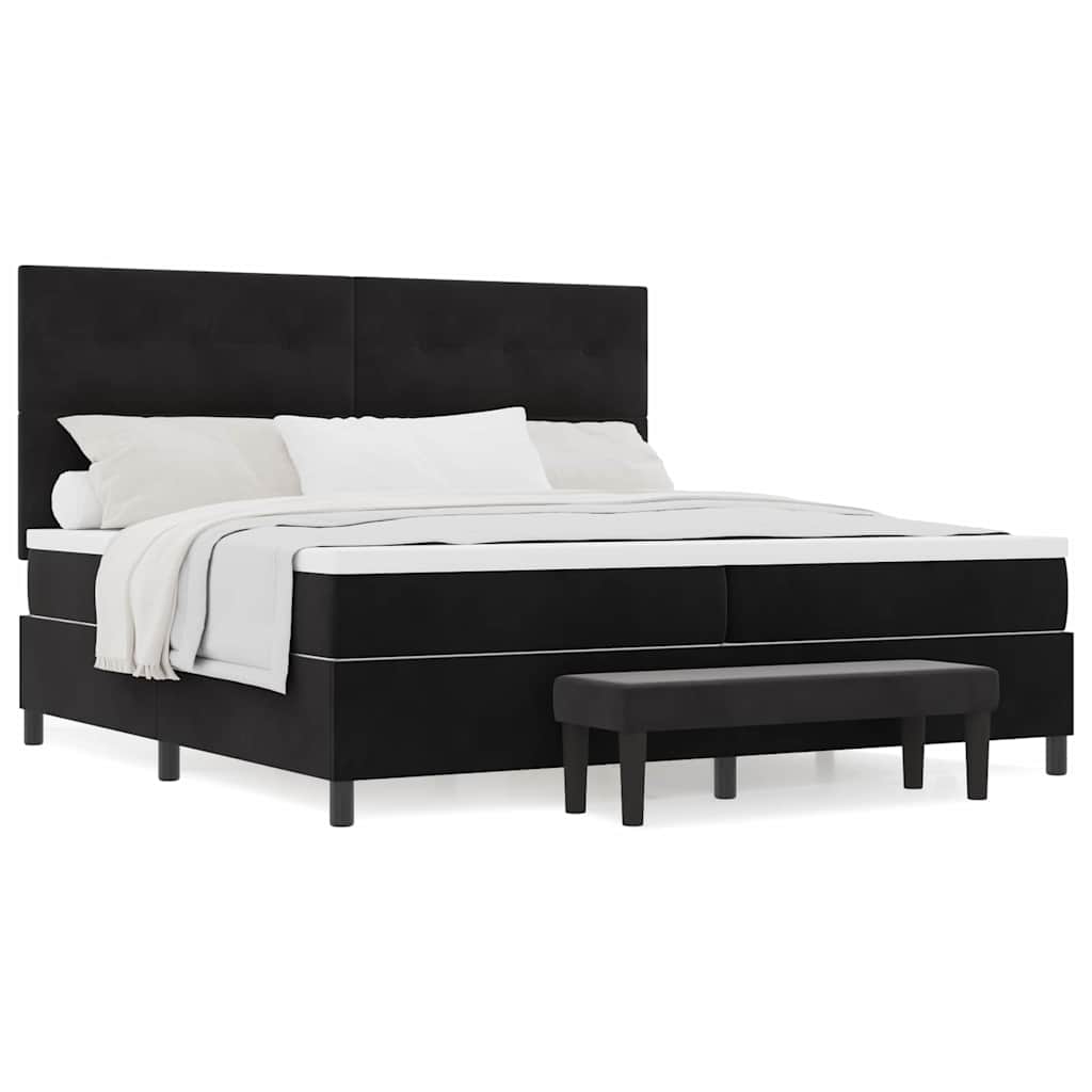 Geef je slaapkamer een make-over met dit leuke boxspringbed, dat stijl en comfort perfect combineert. Het luxe zwarte velvet maakt het niet alleen mooi, maar het biedt ook de ideale setting voor een goede nachtrust en ontspanning.