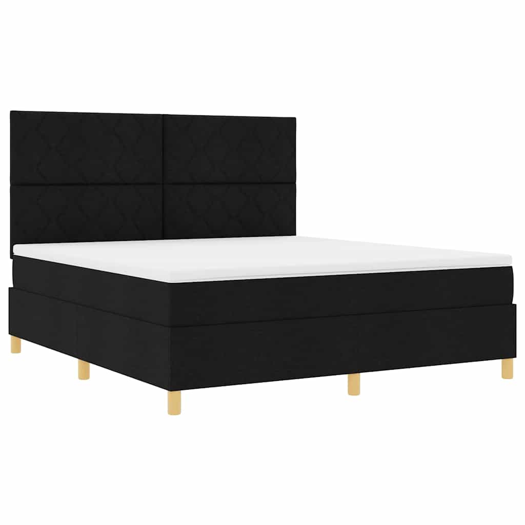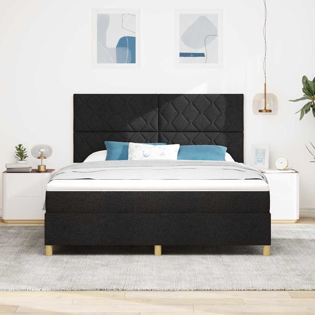 Dit boxspringbed combineert een moderne stijl met een praktisch ontwerp, waardoor je slaapkamer er beter uitziet. Het zwarte stof en de stevige grenenhouten poten geven het een strakke look die in allerlei interieurs past.