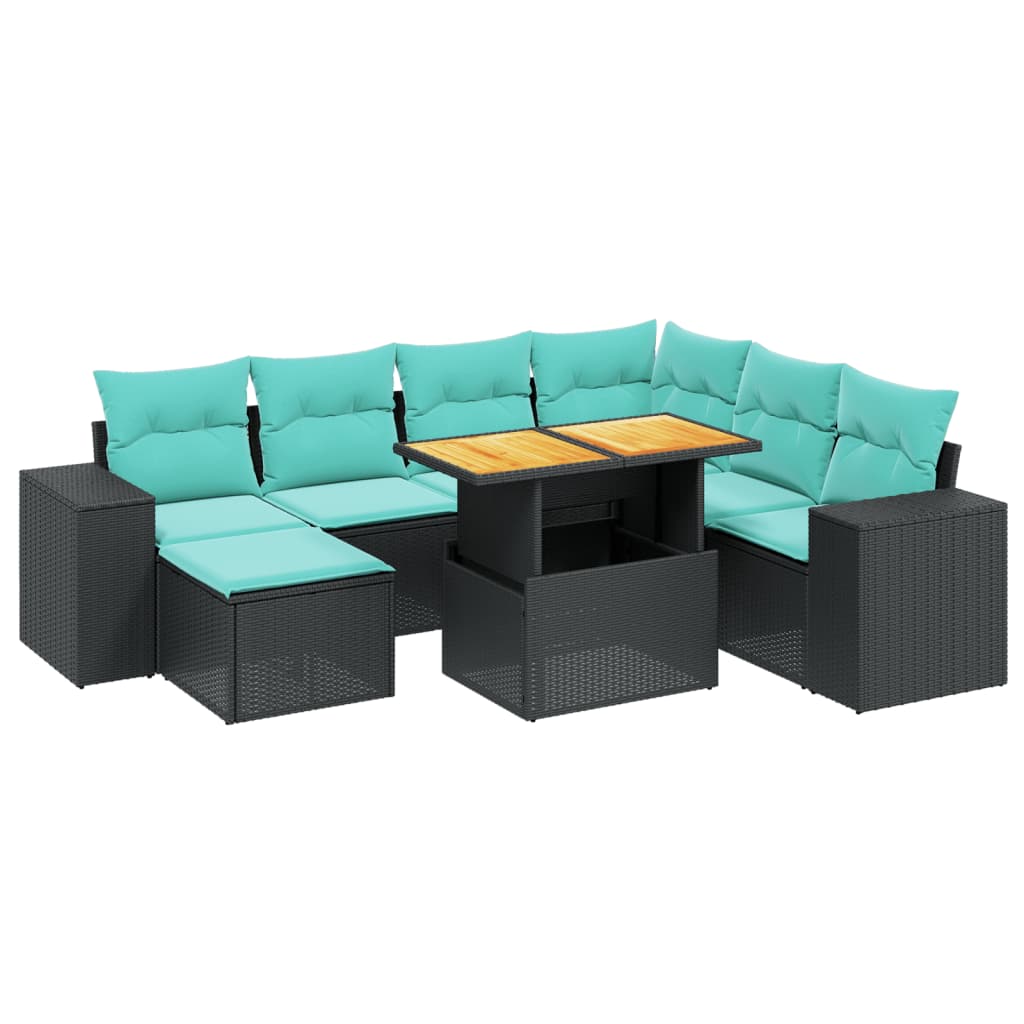 - Materiaal: PE-rattan, gepoedercoat staal en massief acaciahout met olieafwerking
