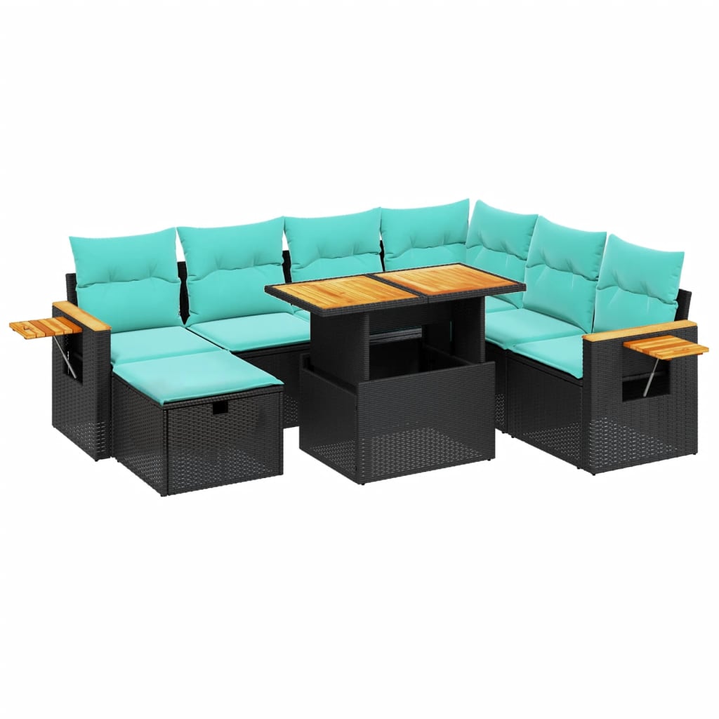 - Materiaal: PE-rattan, gepoedercoat staal en massief acaciahout met olieafwerking
