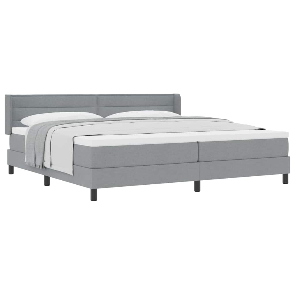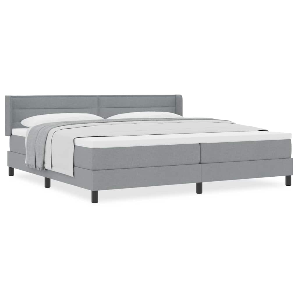 Dit boxspringbed biedt comfort en een moderne sfeer, en tilt je slaapkamer naar een hoger niveau met de stijlvolle lichtgrijze afwerking die bij allerlei decor past. Het hoogte-verstelbare hoofdeinde helpt je om de perfecte positie voor een goede nachtrust te vinden, terwijl het een chique touch toevoegt aan je ruimte.