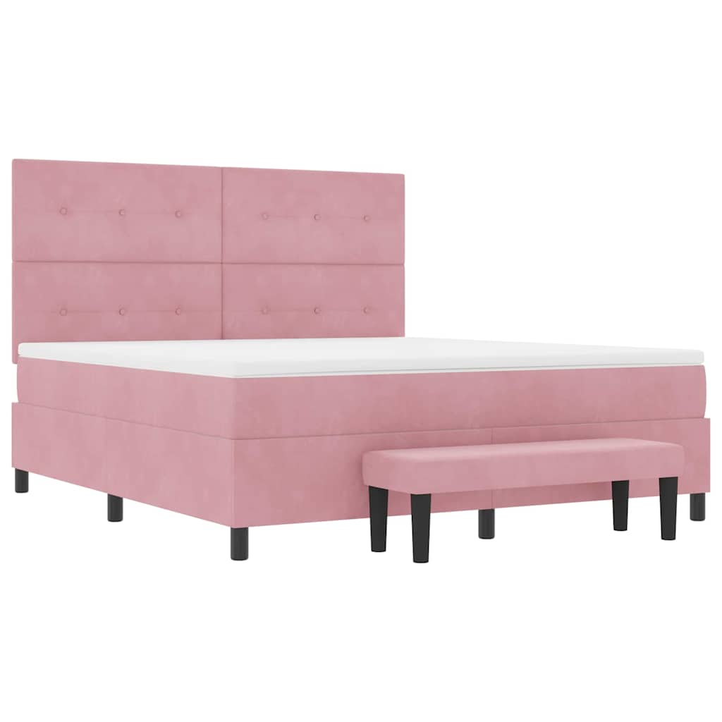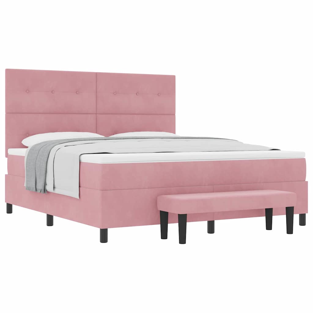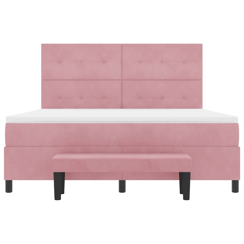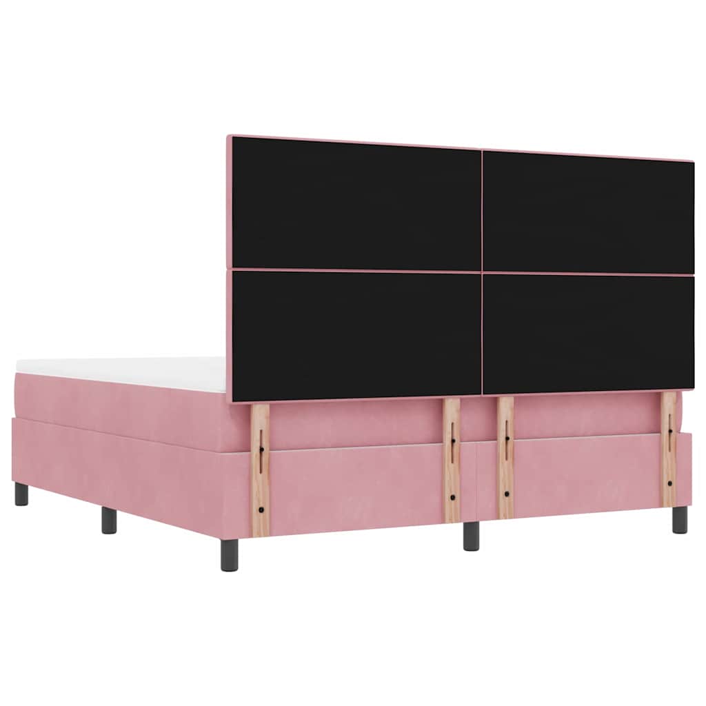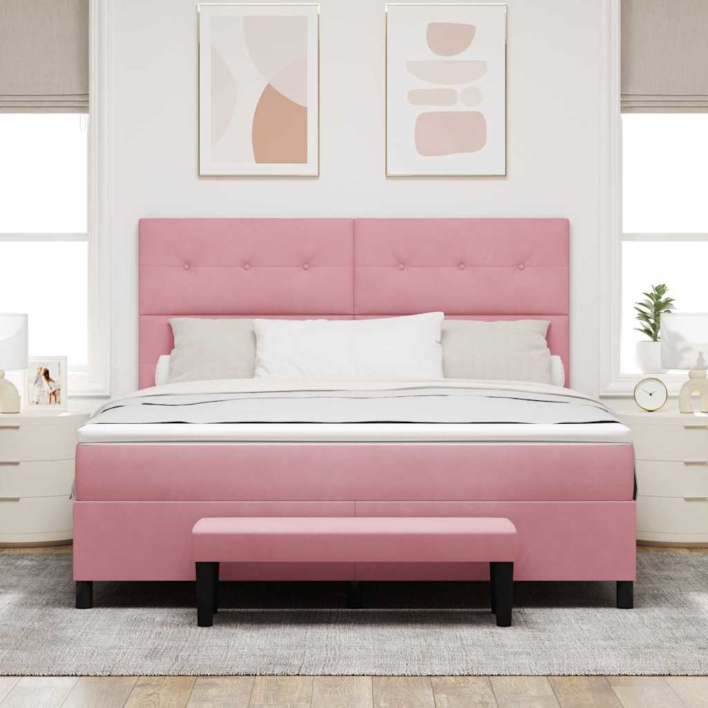 Dit mooie boxspringbed is een stijlvolle slaapoptie, perfect voor volwassenen die comfort en een vleugje stijl willen. Met zijn zachte roze fluwelen bekleding creëert het een leuke sfeer, ideaal om te ontspannen en goede nachten te hebben.