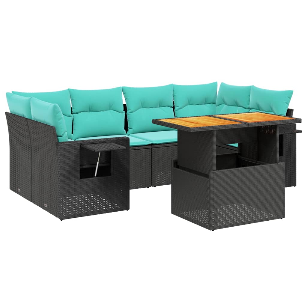 - Materiaal: PE-rattan, gepoedercoat staal en massief acaciahout met olieafwerking