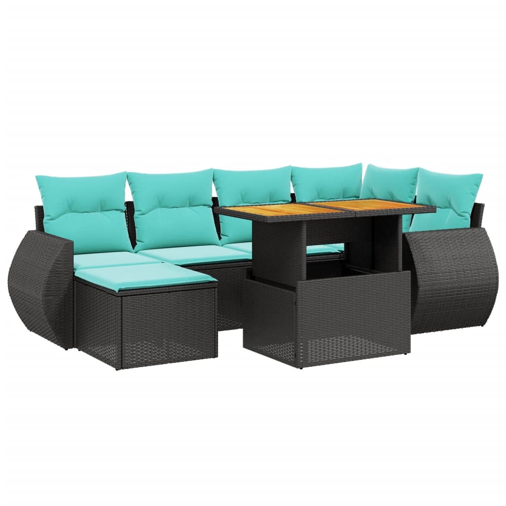- Materiaal: PE-rattan, gepoedercoat staal en massief acaciahout met olieafwerking