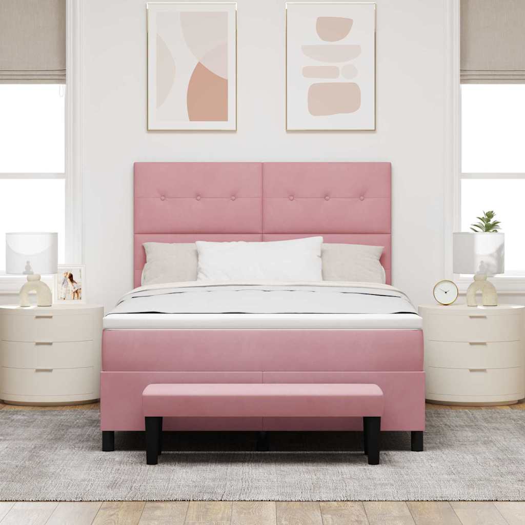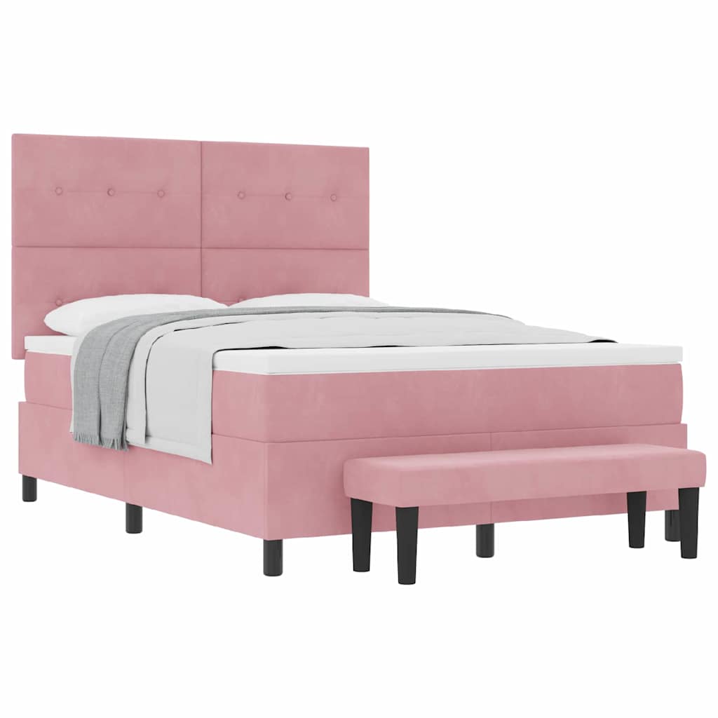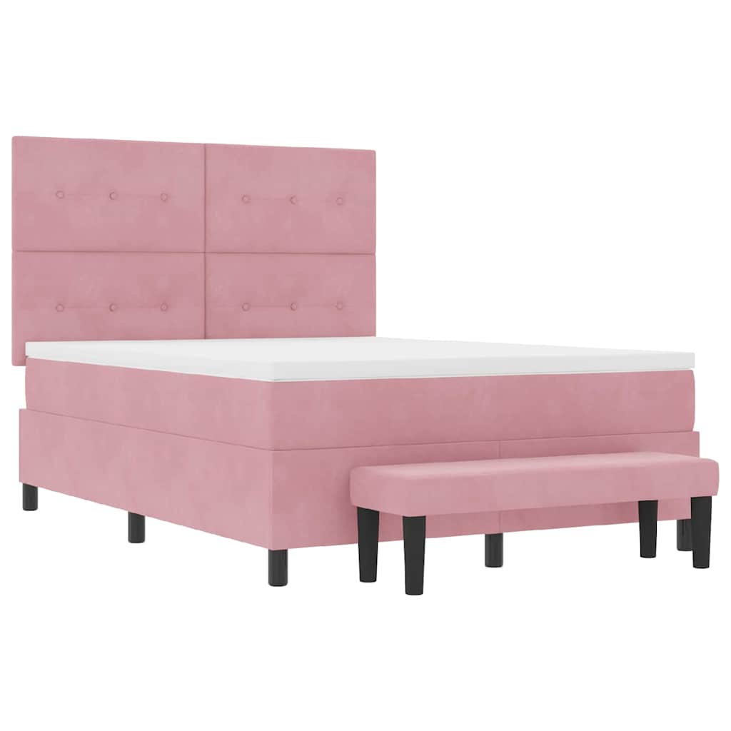 Dit hippe boxspringbed is een slimme keuze voor volwassenen die hun slaapkamer willen opvrolijken én comfortabel willen slapen. De zachte roze fluwelen bekleding geeft het een frisse uitstraling, waardoor het een fijne plek is om te ontspannen.