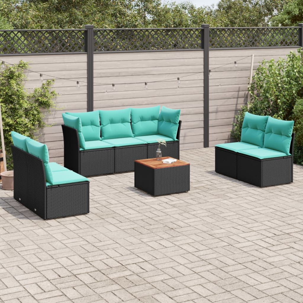 - Materiaal: PE-rattan, gepoedercoat staal en massief acaciahout met olieafwerking