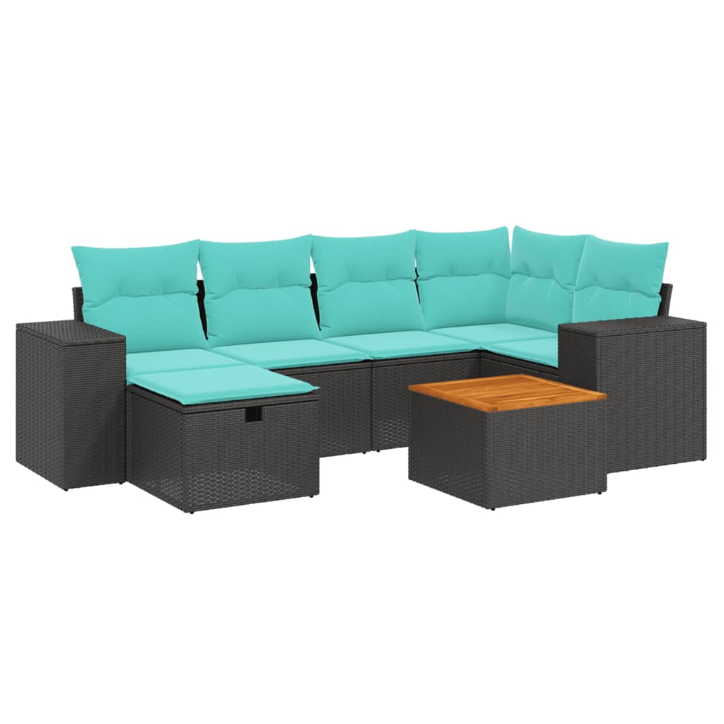 - Materiaal: PE-rattan, gepoedercoat staal en massief acaciahout met olieafwerking