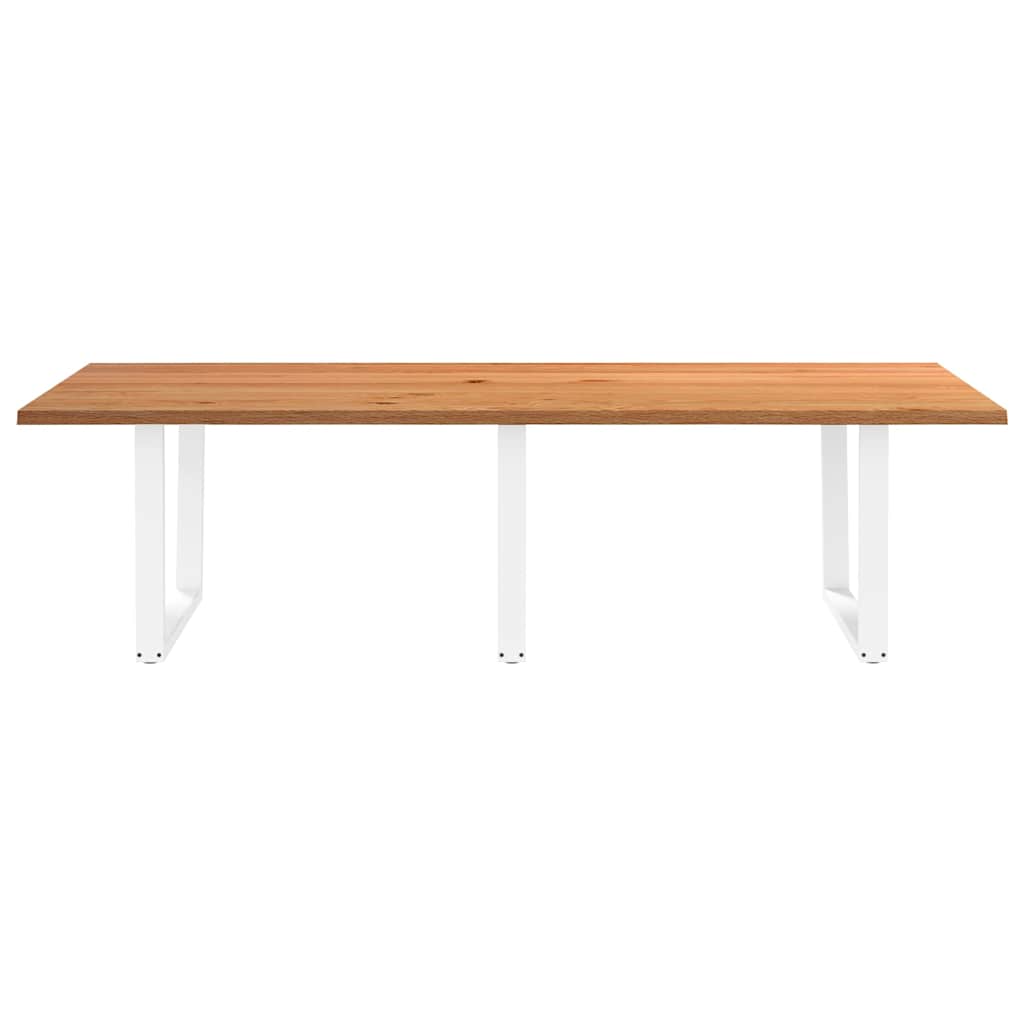- Het tafelblad heeft een dikte van 4 cm langs de randen voor een robuuste uitstraling, en een dikte van 2 cm in het midden om het houtverbruik en het totale gewicht te verminderen.