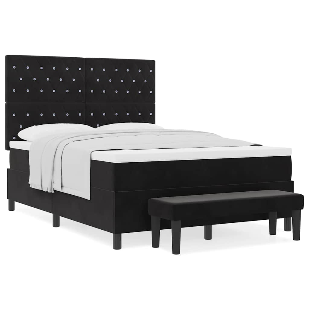 Dit mooie boxspringbed is een elegante slaapoplossing voor volwassenen die comfort en stijl willen in hun slaapkamer. De zachte zwarte fluwelen bekleding zorgt voor een luxe sfeer en creëert een rustige ruimte om te ontspannen en te slapen.