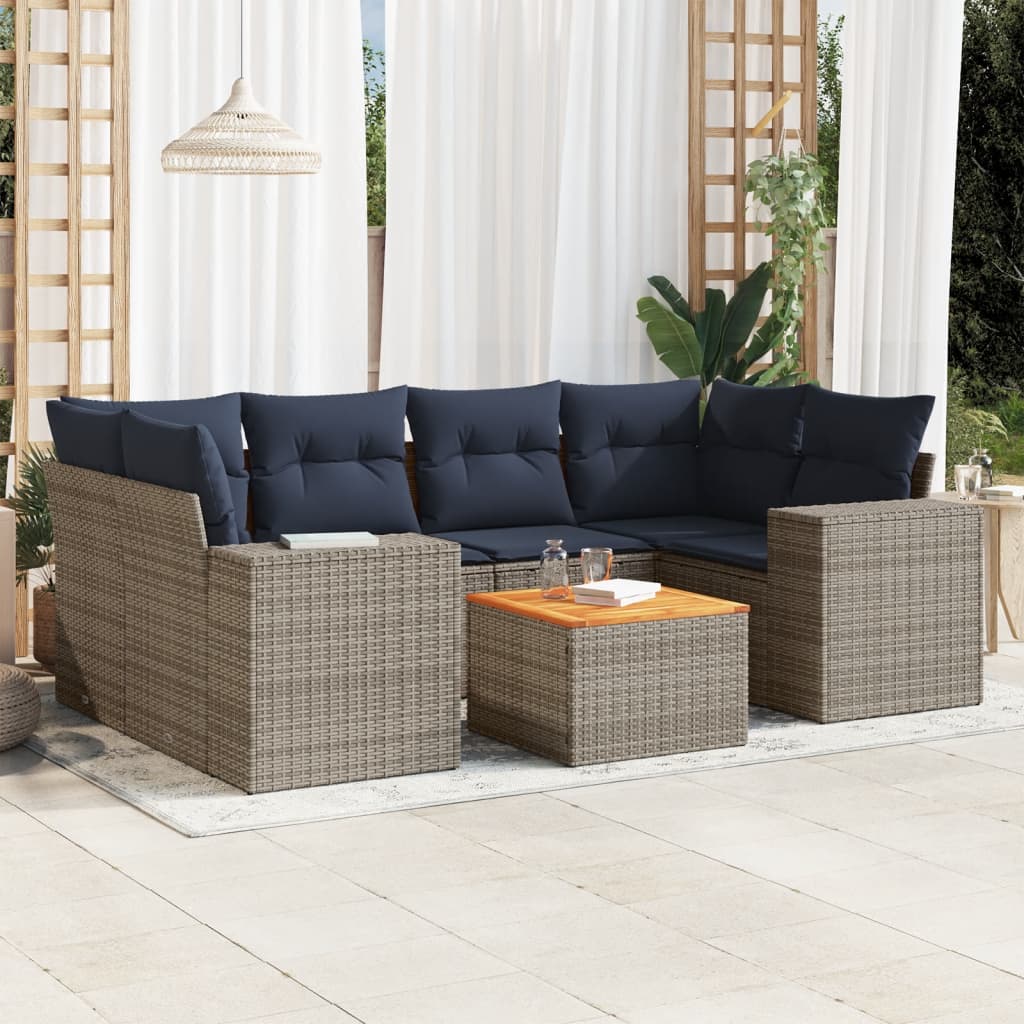 - Materiaal: PE-rattan, gepoedercoat staal en massief acaciahout met olieafwerking