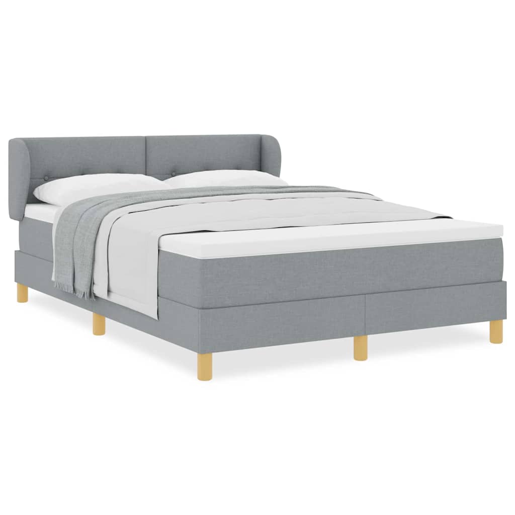 Dit bedframe geeft elke slaapkamer een elegant tintje en zorgt tegelijkertijd voor comfort en duurzaamheid voor rustige nachten. De moderne lichtgrijze stof past bij verschillende stijlen, waardoor het perfect is voor een ontspannen slaapplek.
