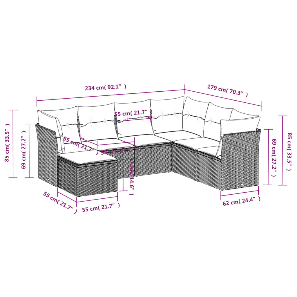 - Totale afmetingen bank: 234 x 179 x 69 cm (B x D x H)