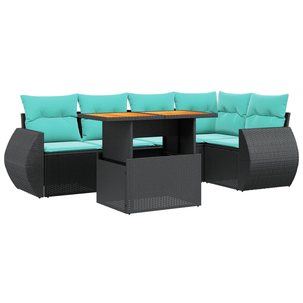 - Materiaal: PE-rattan, gepoedercoat staal en massief acaciahout met olieafwerking
