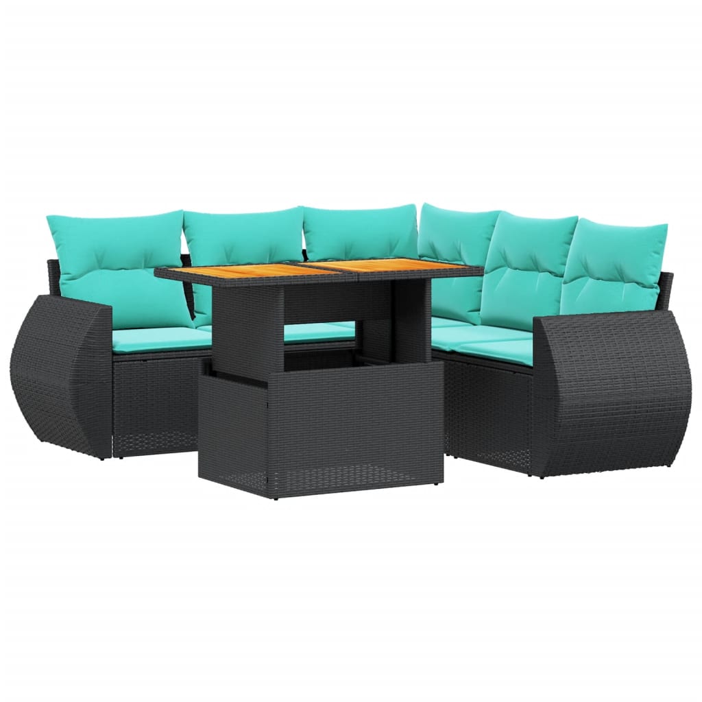 - Materiaal: PE-rattan, gepoedercoat staal en massief acaciahout met olieafwerking