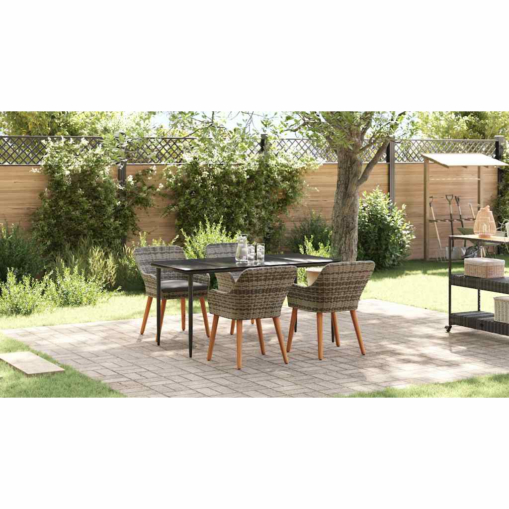 Deze hippe patio eetset mixt een modern uiterlijk met praktische voordelen, perfect voor buiten dineren en entertainment. Met zijn rechthoekige tafel en vier stoelen wordt je balkon of tuin een gezellige plek voor familie en vrienden om samen te komen en te genieten van maaltijden.