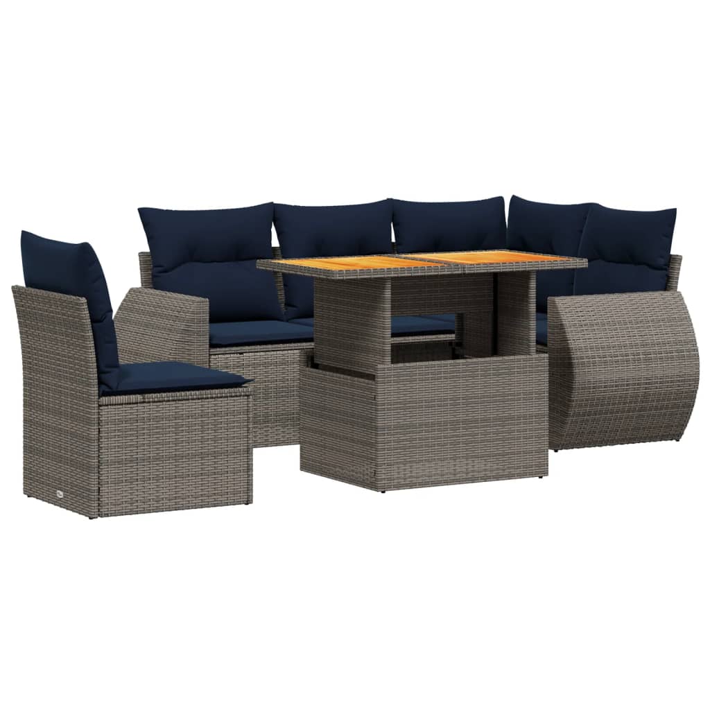 - Materiaal: PE-rattan, gepoedercoat staal en massief acaciahout met olieafwerking