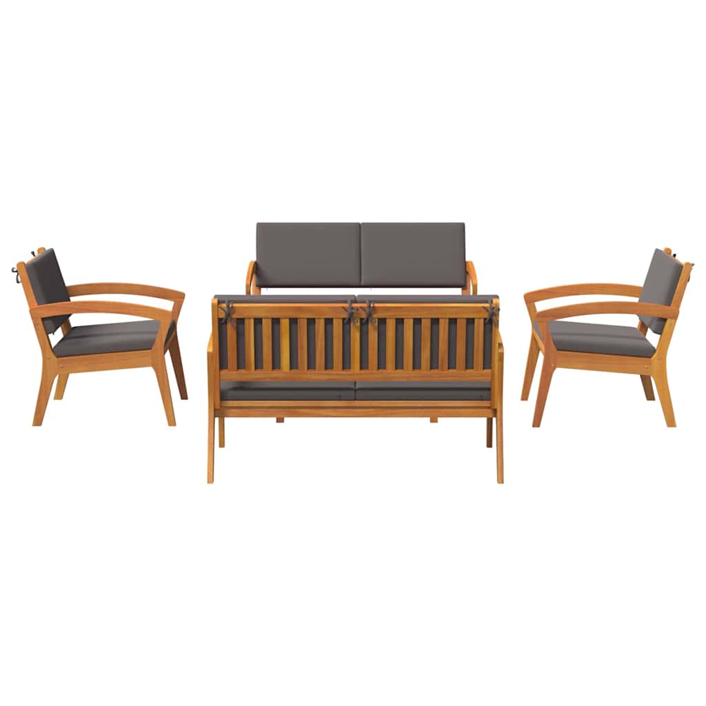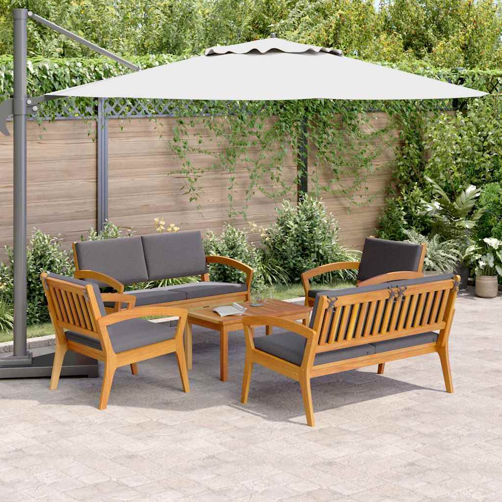 Deze 5-delige Bistro Set draait om stijl en comfort, perfect voor binnen en buiten. Gemaakt van massief acaciahout en stijlvolle antraciet kussens, creëert het een fijne plek om te ontspannen en bij te kletsen, of je nu in de tuin of de woonkamer bent.
