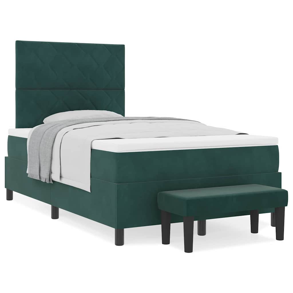 Dit mooie boxspringbed geeft elke slaapkamer een chique uitstraling, perfect voor volwassenen die op zoek zijn naar comfort en een moderne vibe. De zachte donkergroene fluwelen bekleding maakt het bed elegant en zorgt voor een rustige sfeer om in te ontspannen en te slapen.