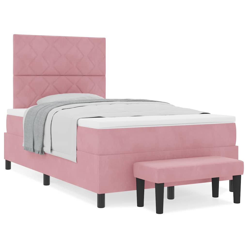 Verander je slaapkamer met dit mooie boxspringbed dat stijl en comfort combineert, perfect voor volwassen mensen die houden van modern design. De zachte roze fluwelen bekleding en het leuke diamantblokpatroon maken het niet alleen een comfortabele slaapplek, maar ook een eye-catcher.