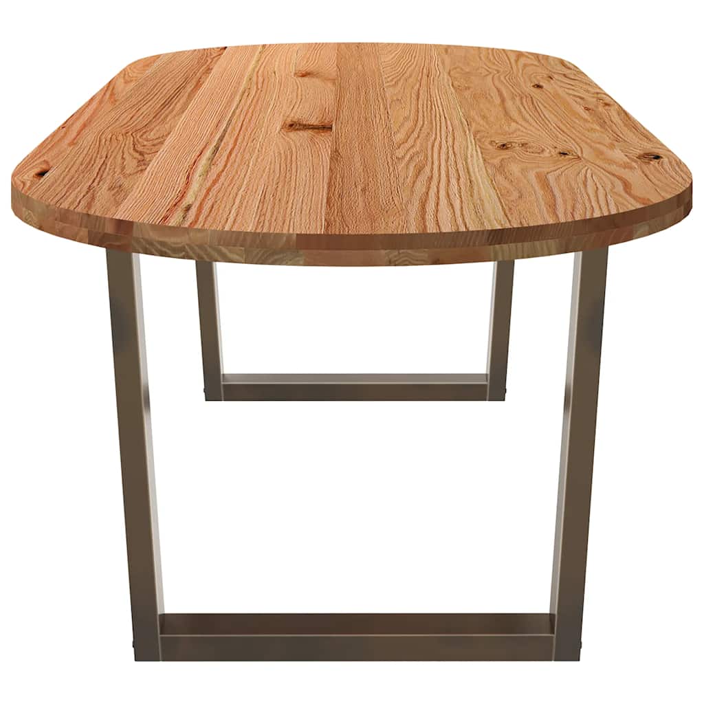 - Het tafelblad heeft een dikte van 4 cm langs de randen voor een robuuste uitstraling, en een dikte van 2 cm in het midden om het houtverbruik en het totale gewicht te verminderen.