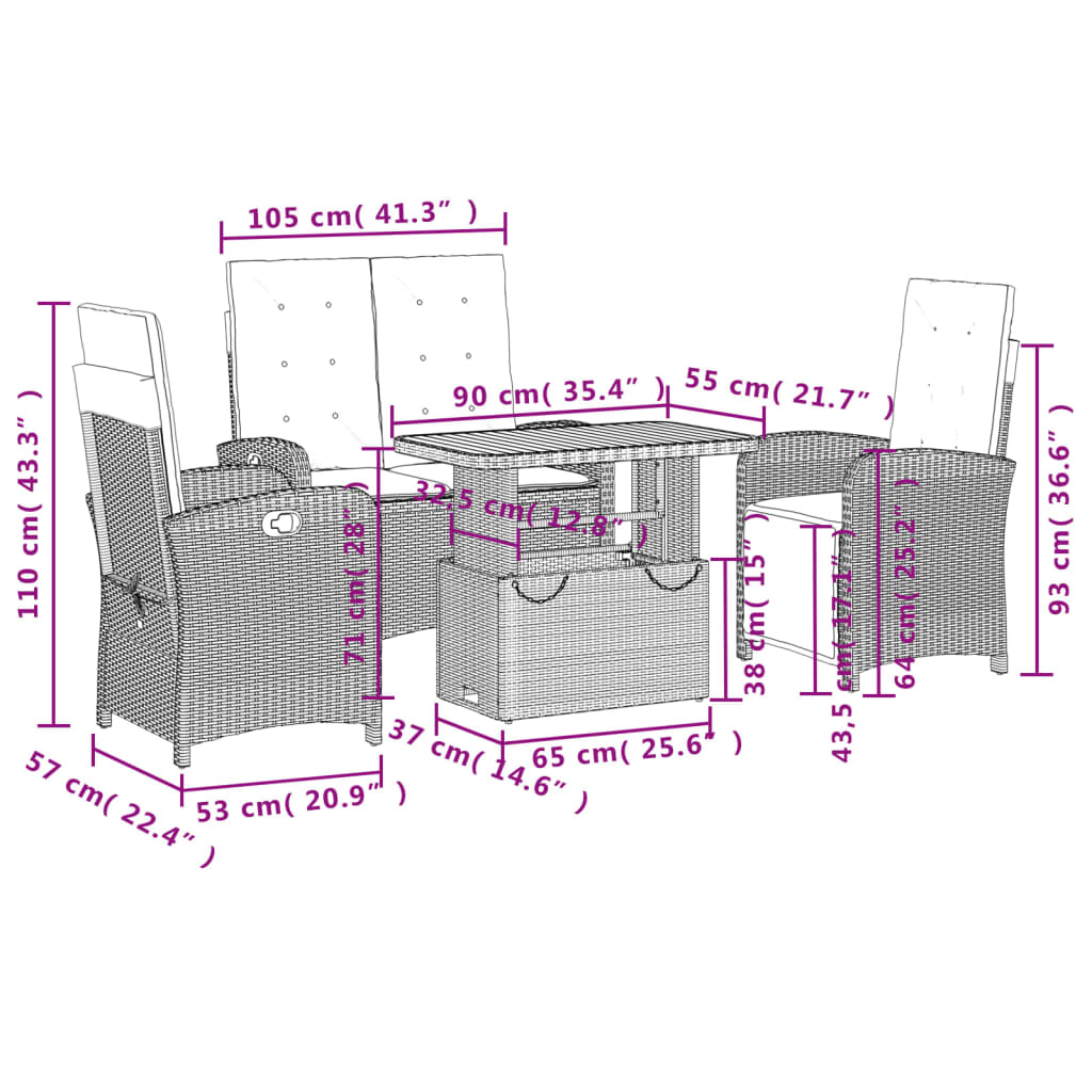 - Materiaal: PE-rattan, gepoedercoat staal en massief acaciahout met olieafwerking