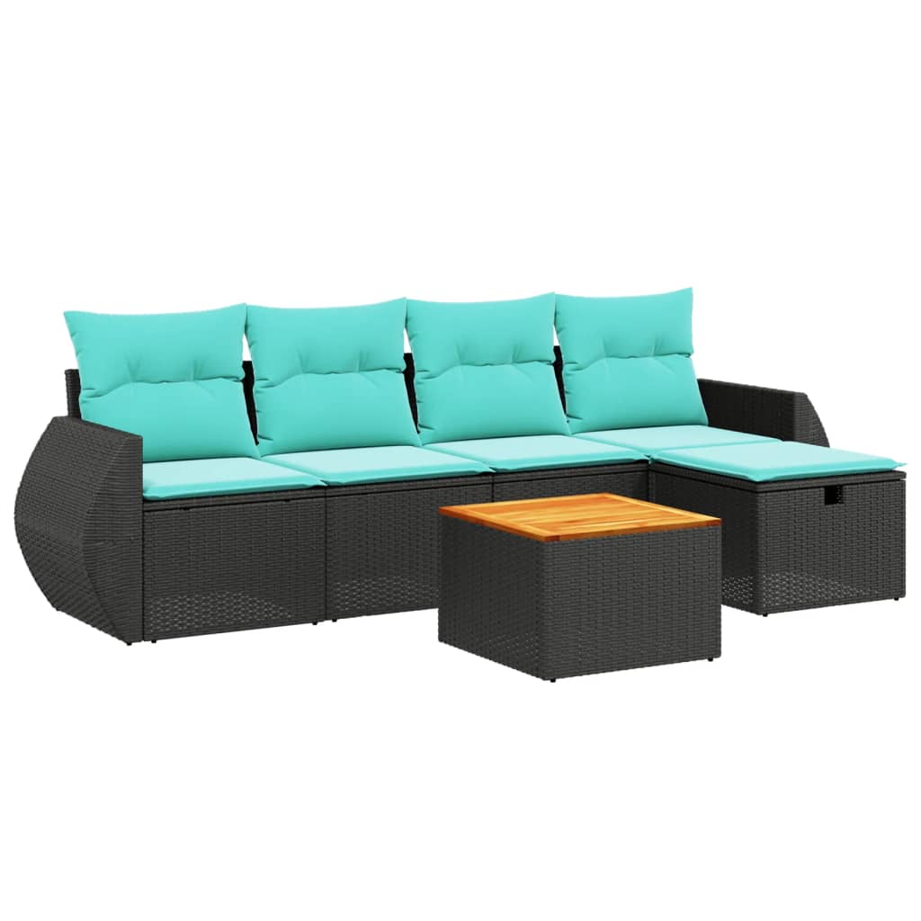 - Materiaal: PE-rattan, gepoedercoat staal en massief acaciahout met olieafwerking